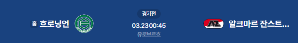 2026년 3월 22일(일) 16:45 (GMT) / 3월 23일(월) 01:45 (KST) 예정 | 네덜란드 에레디비시 27라운드 흐로닝언 vs AZ 알크마르 분석