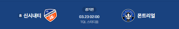 2026년 3월 22일(일) 17:00 (UTC) / 3월 23일(월) 02:00 (KST) 예정 | 미국 MLS FC 신시내티 vs CF 몬트리얼 분석