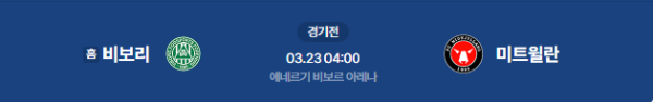 2026년 3월 22일(일) 19:00 (UTC) / 3월 23일(월) 04:00 (KST) 예정 | 덴마크 수페르리가 챔피언십 라운드 24라운드 비보리 FF vs FC 미트윌란 분석