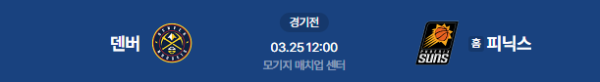 2026년 3월 24일(화) 20:00 (현지 시각) / 3월 25일(화) 12:00 (KST) 예정 | NBA 정규 시즌 덴버 너게츠 vs 피닉스 선즈 분석