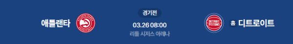 2026년 3월 25일(수) 16:00 (현지 시각) / 3월 26일(목) 05:00 (KST) 예정 | NBA 정규 시즌 애틀랜타 호크스 vs 디트로이트 피스톤스 분석