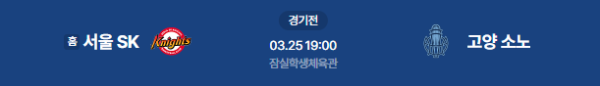 2026년 3월 25일(수) 19:00 예정 | KBL 정규 리그 서울 SK 나이츠 vs 고양 소노 스카이거너스 분석