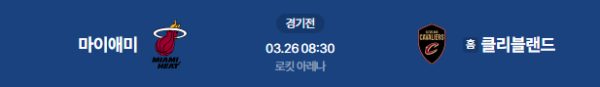2026년 3월 25일(현지 시각) / 3월 26일(목) 08:30 (KST) 예정 | NBA 정규 시즌 마이애미 히트 vs 클리블랜드 캐벌리어스 분석