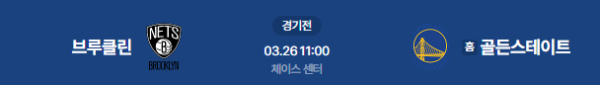 2026년 3월 25일(현지 시각) / 3월 26일(목) 11:00 (KST) 예정 | NBA 정규 시즌 브루클린 네츠 vs 골든스테이트 워리어스 분석