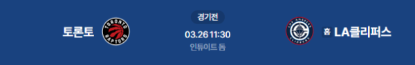 2026년 3월 25일(현지 시각) / 3월 26일(목) 11:30 (KST) 예정 | NBA 정규 시즌 토론토 랩터스 vs LA 클리퍼스 분석
