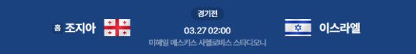 2026년 3월 26일(현지 시각) / 3월 27일(금) 02:00 (KST) 예정 | 국가대표 친선 경기 조지아(홈) vs 이스라엘(원정) 분석