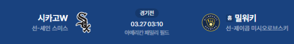 2026년 3월 26일(현지 시각) / 3월 27일(금) 03:10 (KST) 예정 | MLB 개막전 시카고 화이트삭스 vs 밀워키 브루어스 분석
