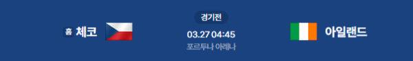 2026년 3월 26일(현지 시각) / 3월 27일(금) 04:45 (KST) 예정 | 2026 FIFA 월드컵 유럽 지역 예선 체코(홈) vs 아일랜드(원정) 분석