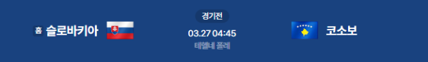 2026년 3월 26일(현지 시각) / 3월 27일(금) 04:45 (KST) 예정 | 2026 FIFA 월드컵 유럽 지역 예선 슬로바키아(홈) vs 코소보(원정) 분석