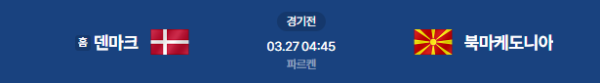 2026년 3월 26일(현지 시각) / 3월 27일(금) 04:45 (KST) 예정 | 2026 FIFA 월드컵 유럽 지역 예선 플레이오프 덴마크(홈) vs 북마케도니아(원정) 분석