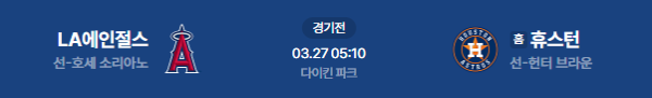 2026년 3월 27일(금) 05:10 (KST) 예정 | MLB 정규시즌 LA 에인절스 vs 휴스턴 애스트로스(홈) 분석