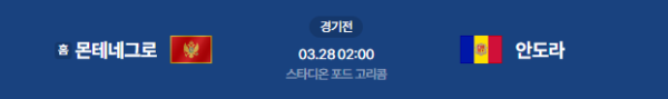 2026년 3월 28일(토) 02:00 (KST) 예정 | 국가대표 친선전 몬테네그로(홈) vs 안도라 분석