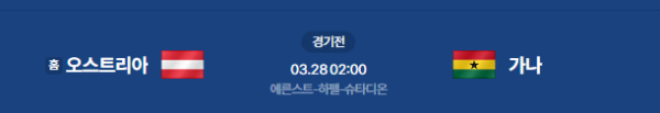 2026년 3월 28일(토) 02:00 (KST) 예정 | 국가대표 친선전 오스트리아(홈) vs 가나 분석