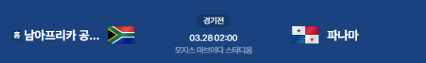 2026년 3월 28일(토) 02:00 (KST) 예정 | 국가대표 친선전 남아프리카 공화국(홈) vs 파나마 분석