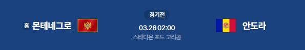 2026년 3월 28일(토) 02:00 (KST) 예정 | 국가대표 친선전 몬테네그로(홈) vs 안도라 분석