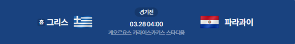 2026년 3월 28일(토) 04:00 (KST) 예정 | 국가대표 친선전 그리스(홈) vs 파라과이 분석