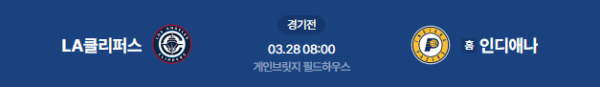 2026년 3월 28일(토) 08:00(KST) 예정된 NBA 정규시즌 LA 클리퍼스 vs 인디애나 페이서스의 경기 분석 리포트입니다.