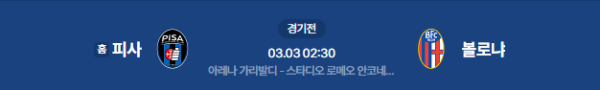2026년 3월 3일 (화) 02:30 (KST) 예정 | 스페인 세리에 A 27라운드 피사 vs 볼로냐 분석