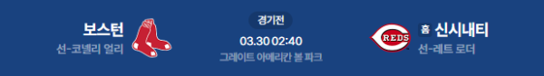 2026년 3월 30일(월) 02:40(KST) 예정된 MLB 정규시즌 보스턴 레드삭스 vs 신시내티 레즈의 경기 분석 리포트입니다.