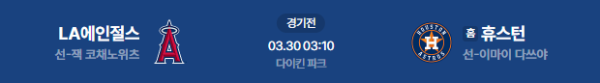 2026년 3월 30일(월) 03:10(KST) 예정된 MLB 정규시즌 LA 에인절스 vs 휴스턴 애스트로스의 경기 분석 리포트입니다.