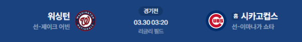 2026년 3월 30일(월) 03:20(KST) 예정된 MLB 정규시즌 워싱턴 내셔널스 vs 시카고 컵스의 경기 분석 리포트입니다.