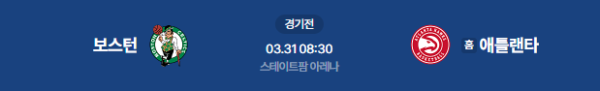 2026년 3월 31일(화) 08:30(KST) 애틀랜타의 스테이트팜 아레나에서 열리는 보스턴 셀틱스 vs 애틀랜타 호크스의 NBA 정규시즌 매치업 분석 리포트입니다.