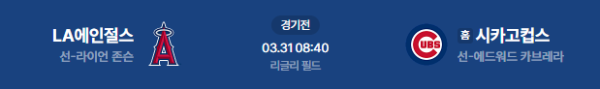 2026년 3월 31일(화) 08:40(KST) 시카고의 리글리 필드에서 열리는 LA 에인절스 vs 시카고 컵스의 MLB 정규시즌 매치업 분석 리포트입니다.