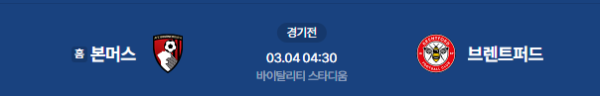 2026년 3월 4일 (수) 04:30 (KST) 예정 | 잉글랜드 프리미어리그 29라운드 본머스 vs 브렌트퍼드 분석
