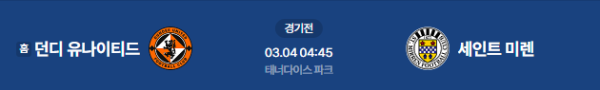 2026년 3월 4일 (수) 04:45 (KST) 예정 | 스코틀랜드 프리미어십 23라운드 던디 유나이티드 vs 세인트 미렌 분석