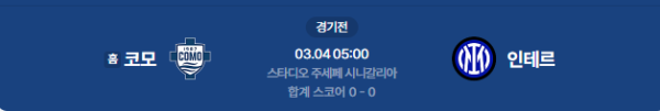 2026년 3월 4일 (수) 05:00 (KST) 예정 | 코파 이탈리아(이탈리아 컵) 준결승 1차전 코모 vs 인테르 분석