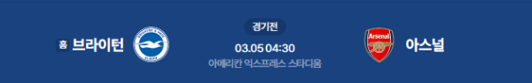 2026년 3월 5일 (목) 04:30 (KST) 예정 | 잉글랜드 프리미어리그 29라운드 브라이턴 vs 아스널 분석