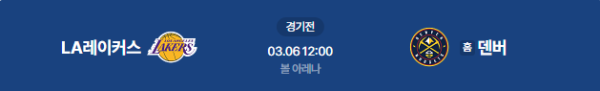 2026년 3월 6일(금) 12:00 (KST) 예정 | NBA 정규시즌 LA 레이커스 vs 덴버 너게츠 분석