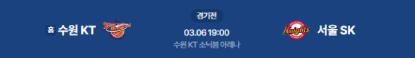 2026년 3월 6일(금) 19:00 (KST) 예정 | KBL 정규리그 수원 KT vs 서울 SK 분석