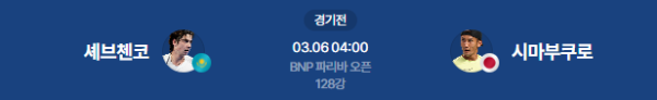 셰브첸코와 시마부쿠로의 상대 전적은 1승 0패로 시마부쿠로가 앞서 있습니다. 시마부쿠로가 특유의 빠른 풋워크로 셰브첸코의 베이스라인 공세를 무력화시킬 수 있을지가 승부의 핵심입니다.