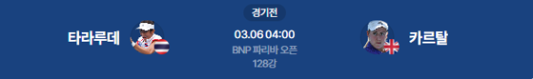 타라루데가 예선에서의 기세를 본선 첫 세트까지 이어갈 수 있을지가 핵심입니다. 만약 타라루데가 초반 브레이크에 성공하며 변수를 만든다면 접전으로 흐를 수 있으나, 카르탈의 견고한 서브 게임을 무너뜨리기는 쉽지 않을 전망입니다.