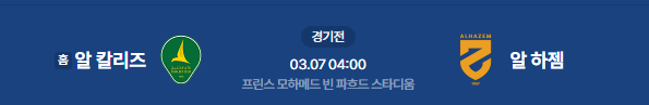 2026년 3월 7일(토) 04:00 (KST) 예정 | 사우디 프로리그 25라운드 알 칼리즈 vs 알 하젬 분석