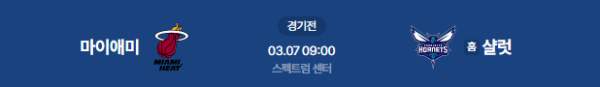 2026년 3월 7일(토) 09:00 (KST) 예정 | NBA 정규시즌 샬럿 호네츠 vs 마이애미 히트 분석