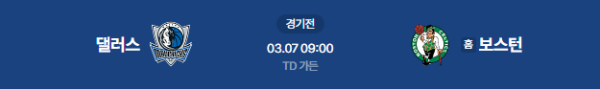 2026년 3월 7일(토) 09:00 (KST) 예정 | NBA 정규시즌 보스턴 셀틱스 vs 댈러스 매버릭스 분석