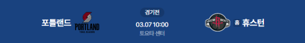 2026년 3월 7일(토) 10:00 (KST) 예정 | NBA 정규시즌 휴스턴 로켓츠 vs 포틀랜드 트레일블레이저스 분석