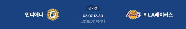 2026년 3월 7일(토) 12:30 (KST) 예정 | NBA 정규시즌 LA 레이커스 vs 인디애나 페이서스 분석