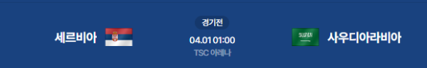 2026년 4월 1일(수) 01:00(KST) 세르비아의 TSC 아레나에서 열리는 세르비아 vs 사우디아라비아의 국가대표 친선 경기 분석 리포트입니다.