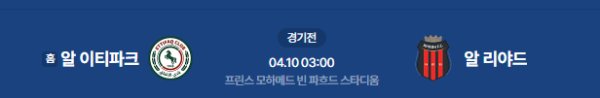 2026년 4월 10일(금) 03:00 (KST) 사우디 프로페셔널리그: 알 이티파크 vs 알 리야드