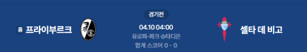 2026년 4월 10일(금) 04:00 (KST) UEFA 유로파리그 8강 1차전: SC 프라이부르크 vs 셀타 데 비고
