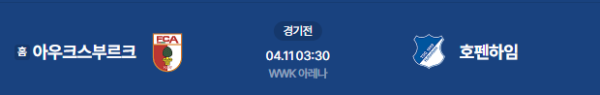 2026년 4월 11일(토) 03:30 (KST) 독일 분데스리가: FC 아우크스부르크 vs TSG 1899 호펜하임