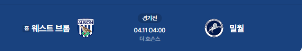 경기 시간: 2026년 4월 11일 04:00 (KST) / 장소: 더 호손스 (웨스트 브로미치)