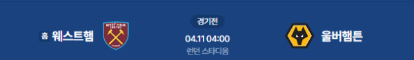2026년 4월 11일(토) 04:00 (KST) 잉글랜드 프리미어리그: 웨스트햄 유나이티드 vs 울버햄튼 원더러스