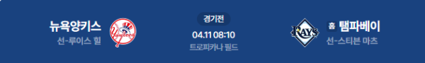2026년 4월 11일(토) 08:10 (KST) 메이저리그: 뉴욕 양키스 vs 탬파베이 레이스