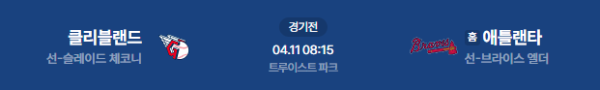 2026년 4월 11일(토) 08:15 (KST) 메이저리그: 클리블랜드 가디언스 vs 애틀랜타 브레이브스