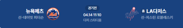 2026년 4월 14일(화) 11:10 (KST) 메이저리그(MLB): 뉴욕 메츠 vs LA 다저스