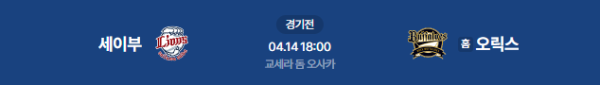 2026년 4월 14일(화) 18:00 (KST) 일본프로야구(NPB): 세이부 라이온즈 vs 오릭스 버팔로즈